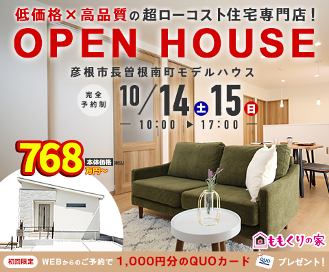 ももくりの家では、完成した住宅を期間限定のモデルハウスとして見学会を開催しております。ぜひ、お越しください。