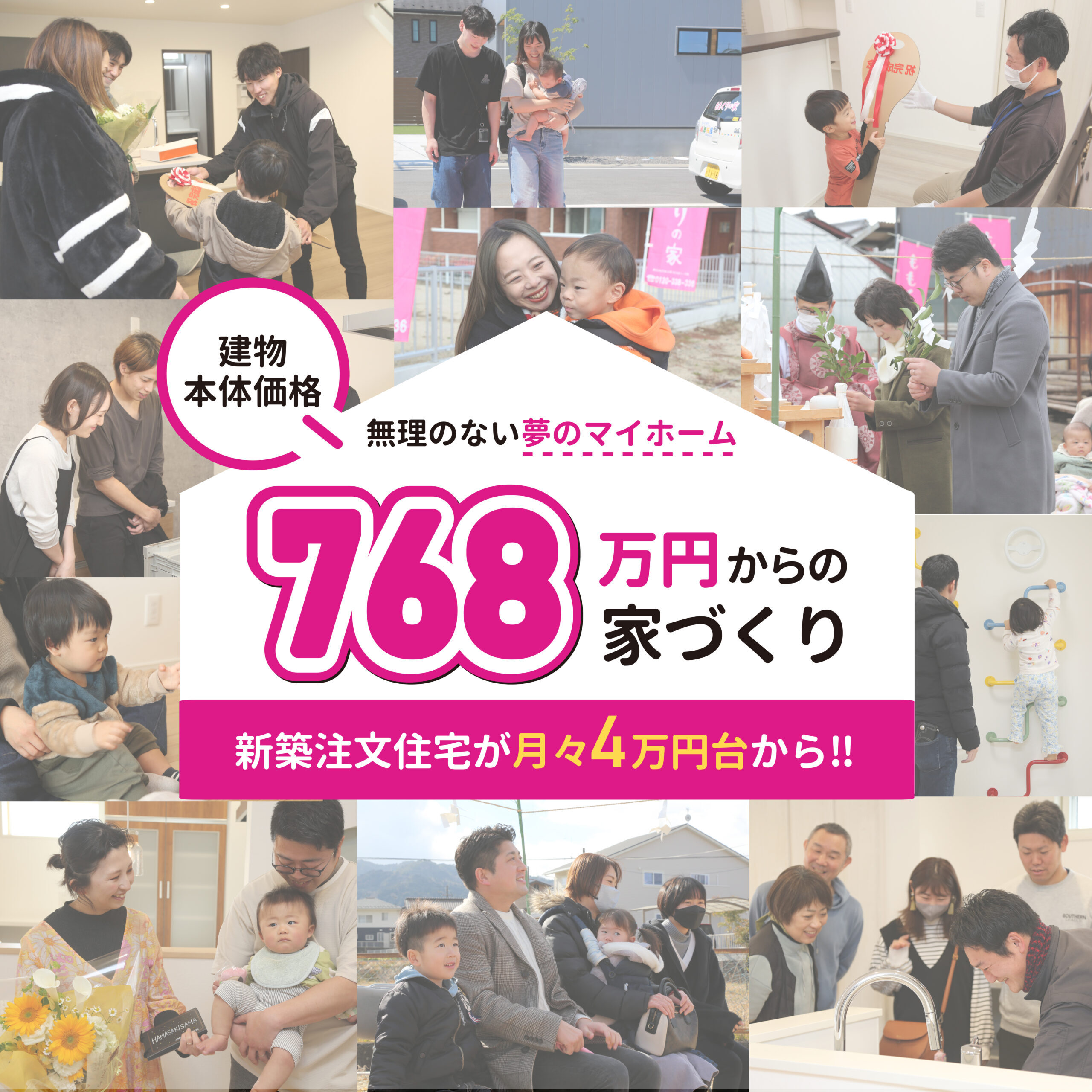 私たちがご提供するのは暮らしに無理のない低コストで建てる自分らしい暮らしができる家づくりです。子育てをするにもマイホームは理想的。庭のある一軒家で家族とのびのびと過ごす休日や、「ペットと一緒に暮らしたい」という夢も叶います。私たちの家づくりの中心にあるのはいつも「人」と「家族」です。家づくりを通してお客様の暮らしが豊かなものになりますように、人生のパートナーとして共に感動を分かち合いながら家づくりのお手伝いをさせて頂きます。