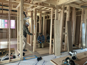 上棟後という事もあって大工さんの下地作業中でした