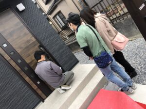 写真に写り込んで逃げようとするリフォームの福宮さん笑笑