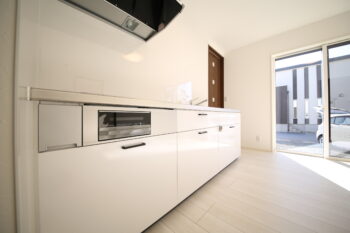 壁付けにすることでキッチンスペースもリビングとして利用できるので
