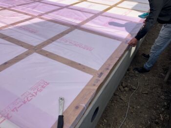 まず床断熱材を施工します。