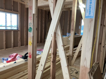 ↑こちらはH様邸の中間検査です。金物や柱がきちんとついているか確認してもらっています