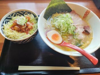 柚子入り貝出汁らーめん🍜と近江牛ホルモン丼🐂です✨