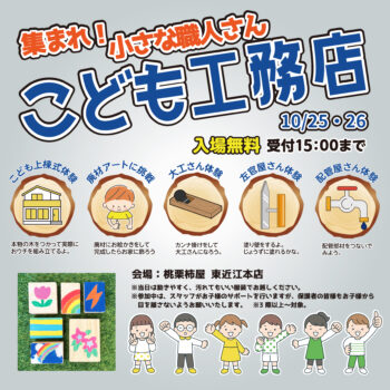 毎年大好評のももくりマルシェやこども工務店を今年も開催します!