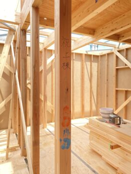 お昼にはもう2階の柱まで立ち上がっている状態になっており、お昼頃にお施主様が現場に来られた時に思わず「もうこんなに!? 早いなぁ〜」と驚かれていました😄
