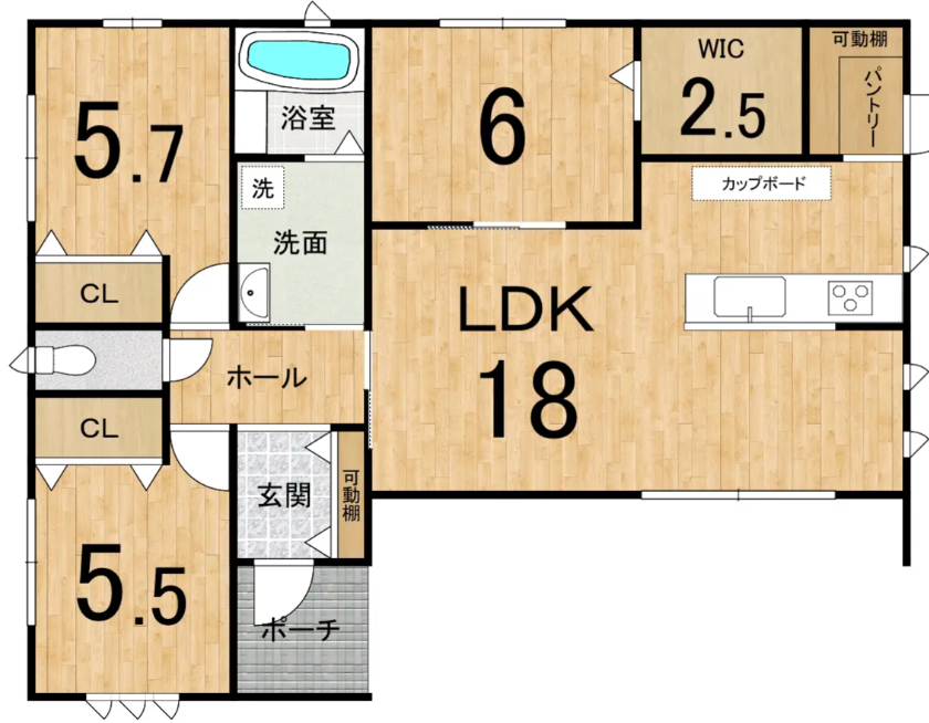 18帖の広~いLDKに、広めポーチ、広めの玄関に居室も3つあり使いやすい導線が確保されています✨