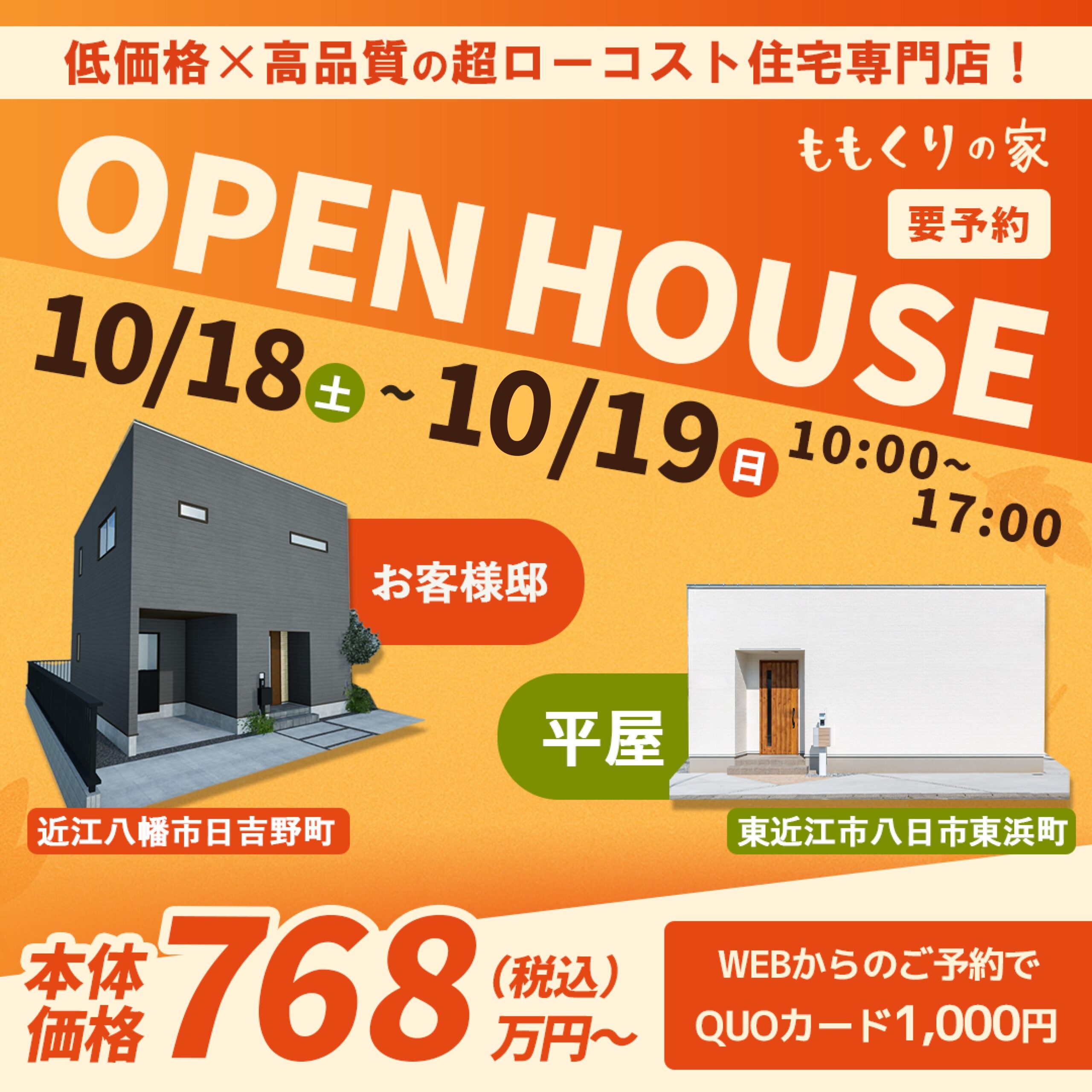 10/18(土)、19(日) 【2棟同時完成見学会】 東近江市八日市東浜町モデルハウス